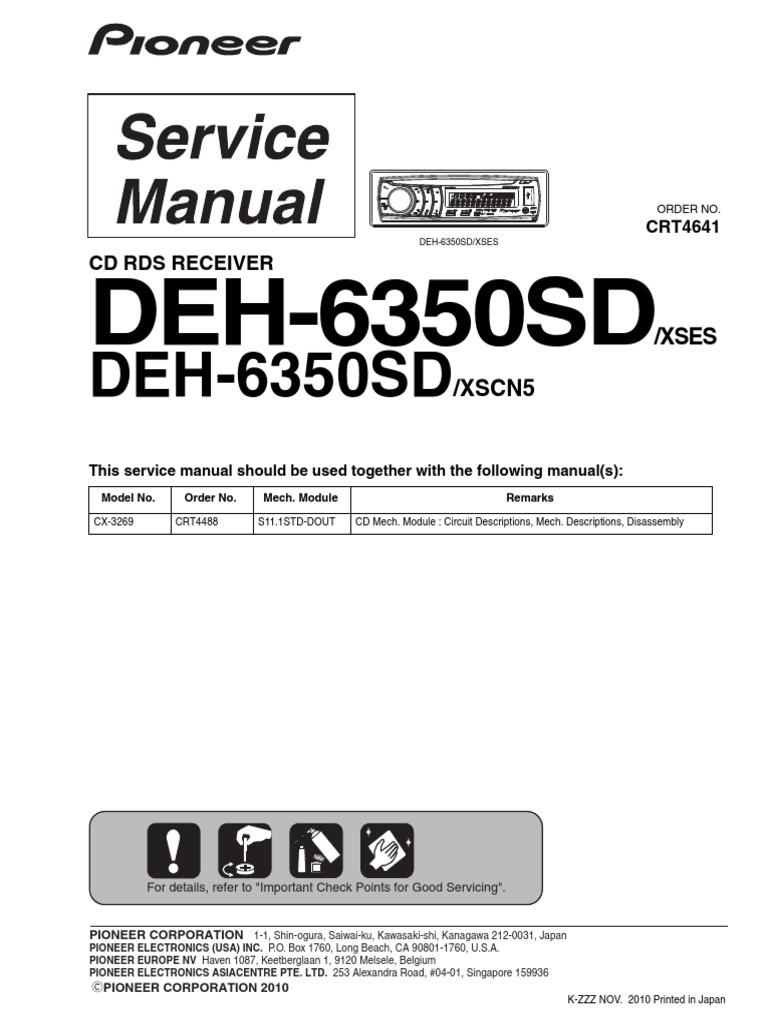 We have 1 Pioneer DEH-6350SD manual available for free PDF download. It shows the components of the circuit as simplified shapes and the faculty and signal links surrounded by the devices. With this kind of an illustrative guide youll have the ability to troubleshoot avoid and total your projects with ease.