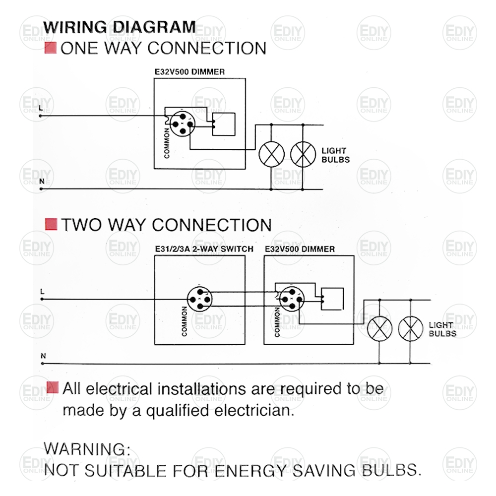 Refit switch plate to wall and fit the dimmer knob to the shaft. If the unit is wired for 2-way operation it can be switched ON or OFF from either location but. Connect the dimmer in accordance with the wiring diagrams shown over the page.